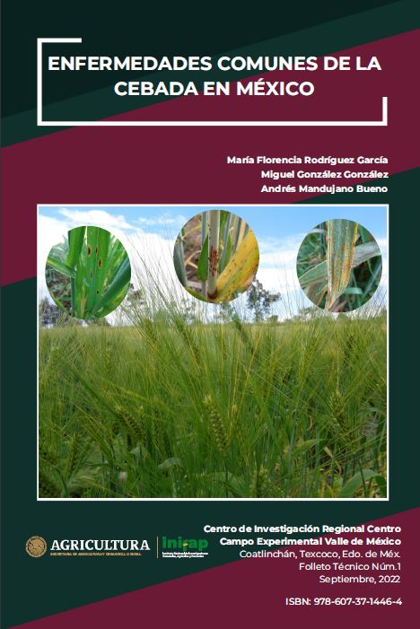 La producción de cebada en México se ve afectada por la presencia de factores abióticos y bióticos. Entre los factores bióticos, las enfermedades constituyen uno de los grupos de mayor importancia. Las principales enfermedades que se presentan durante el ciclo del cultivo por su importancia económica incluyen a las royas, el complejo de manchas foliares y las que afectan a la espiga y el grano. Dichas enfermedades afectan el rendimiento y demeritan la calidad del grano. En la presente publicación se describen las principales enfermedades del cultivo de cebada en México y las estrategias para su control, pudiéndose utilizar como una herramienta que permita implementar estrategias de manejo con el objetivo de disminuir las pérdidas en el rendimiento que ocasionan las enfermedades en el cultivo de cebada.