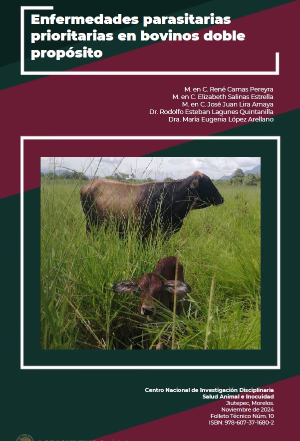 El sistema doble propósito se práctica ampliamente en regiones tropicales. En estos sistemas, diversos grupos de patógenos como los parásitos afectan el estado de salud de bovinos en forma aguda o crónica. En este sentido, existen diversas innovaciones tecnológicas que pueden permitir mejorar el diagnóstico, control y prevención de algunas enfermedades parasitarias prioritarias en bovinos. Por ello, el presente folleto busca brindar conocimientos prácticos y herramientas que permitan mejorar el manejo sanitario de estas parasitosis prioritarias en bovinos de sistema doble propósito, característico de regiones tropicales en México.