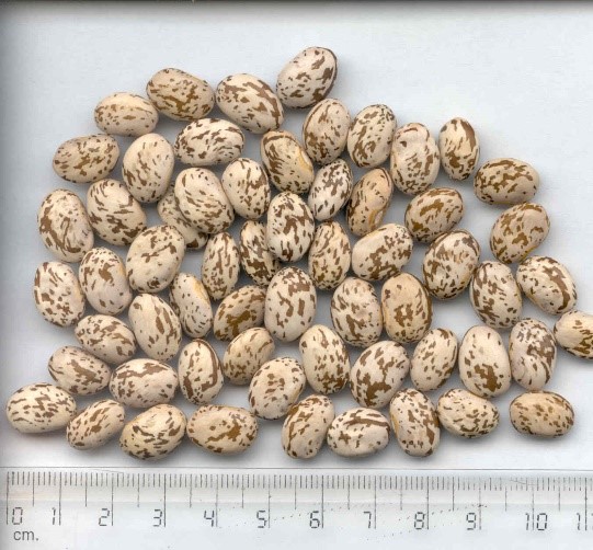 Muestra hipocótilo verde, color blanco de la flor, el color de la vaina es verde oscuro con pigmentación roja esparcida; la forma del grano es elíptica truncada. Florece 42 días después de la siembra (DDS) y alcanza la madurez fisiológica en un promedio de 89 a 111 DDS.